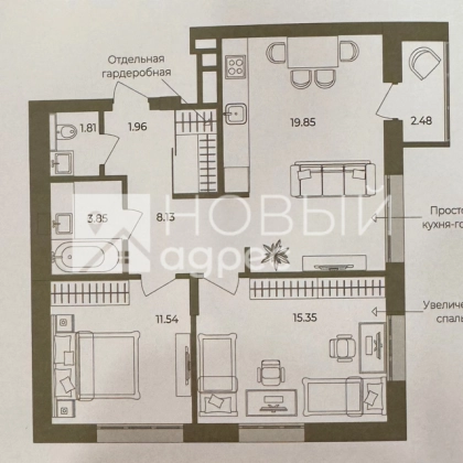 Площадь кухни, кв.м.19.85