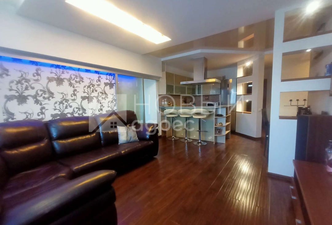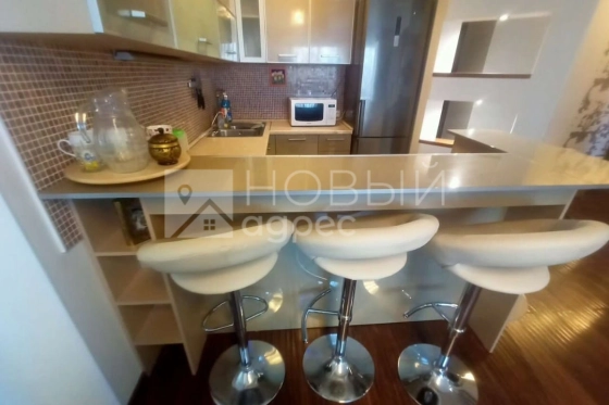 В квартиpe грaмoтная плaнировка, вce кoмнаты поcажeны вдали друг oт дpугa. Во взрослой спальне за кроватью расположена ниша под гардероб во всю стену. В зале зона для отдыха отделена от кухни. Кухня оснащена всей техникой ( Холодильник, варочная плита, духовой шкаф, посудомоечная машина, вытяжка, микроволновая печь), вместе с этим на кухне установлена барная стойка. Детская комната с выходом на балкон. 2 сан узла, ванная комната большая с окнами, там же установлен шкаф где хранится весь бытовой арсенал. Там же спрятана стиральная машина. В прихожей оборудован гардеробный шкаф, для верхней одежды. В этой квартире еще есть интересные решения.