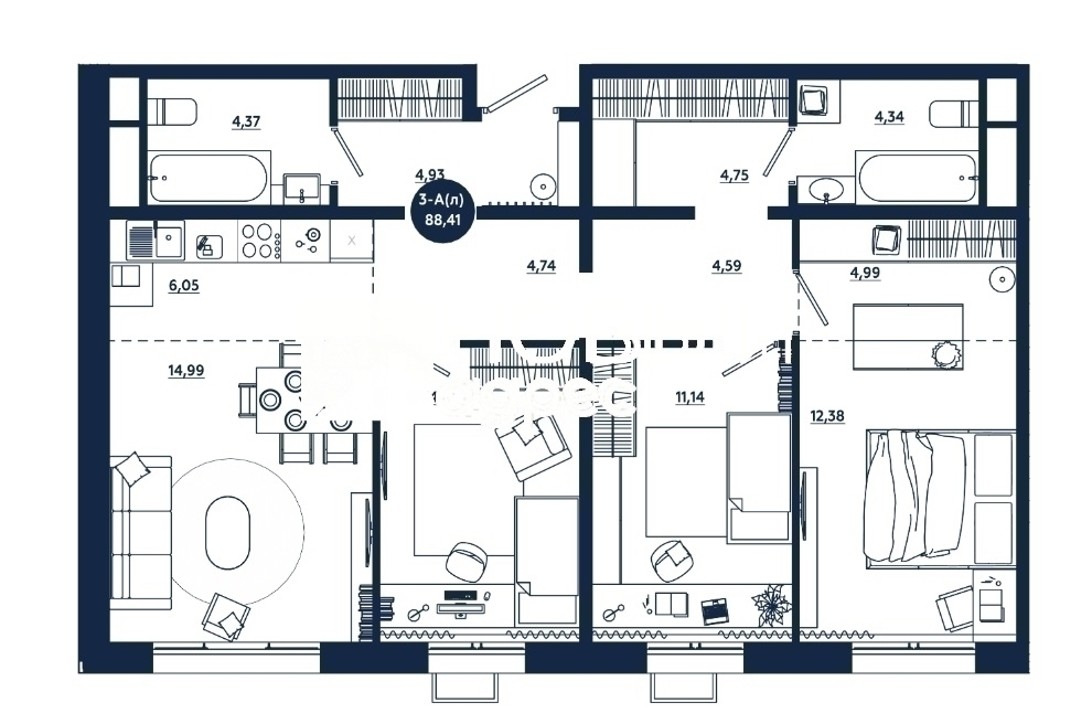 3 комнатные - от 88,41 кв.м.