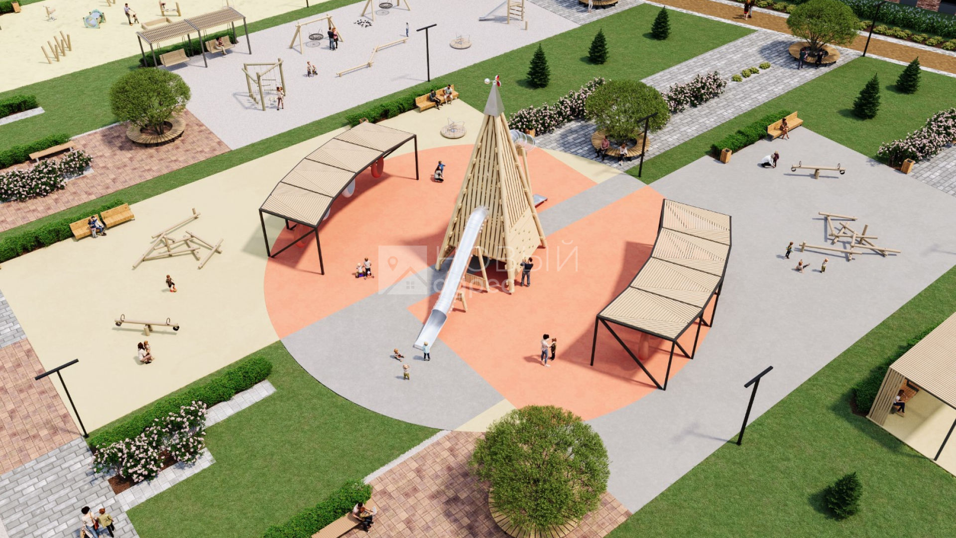 - Благоустройство территории (Все продумано до мелочей - от каждого куста роз до уникальной горки в виде хантыйского чума в центре двора