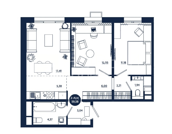 2 комнатные - от 59,58 кв.м.